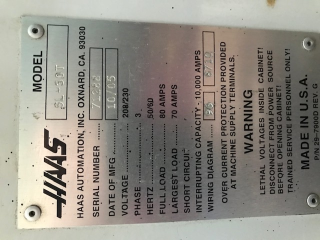 HAAS SL-30T CNC TURNING CENTER